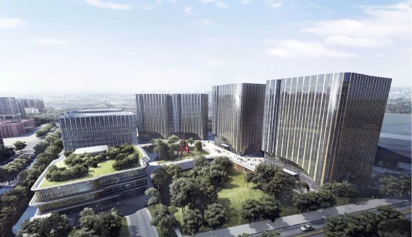 科技園項(xiàng)目一期總建筑面積約22.5萬(wàn)平方米,包含6棟研發(fā)樓和2層地下車(chē)庫(kù)(地下共3層,一二期地下相互聯(lián)通),還設(shè)有下沉廣場(chǎng)和商鋪,敞亮的下沉廣場(chǎng)將所有建筑連在了一起。T6樓設(shè)置了戶外屋頂花園,特別鋪設(shè)